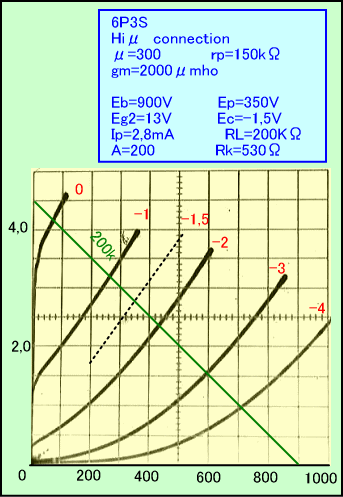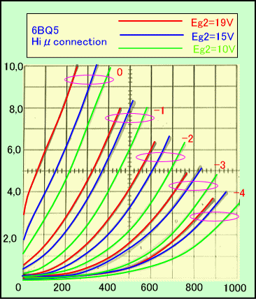 ハイμ3極間接続では今一つだった電流特性を改善させるには、G2に僅かなバイアスを与えてハイμ5極管接続とすれば良いのではないでしょうか。