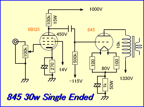 こうしておなじみの6BQ5と845という2本だけのコラボにより、あっさりパワーアンプ構想ができてしまいました。このようなラインナップもまた面白いのではないでしょうか。