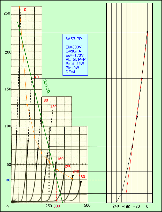 よって両ユニットを使ったパラシングルならば単球で9W位が期待でき、6AS7系はOPT付きアンプの出力管としても十分な実力を持っていたことがわかります。