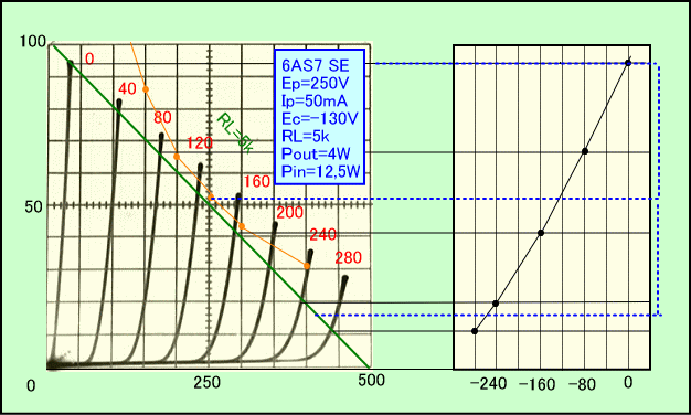 またグリッドを開放したバイアス無しの状態では、わずかに不安定なループが発生し、内部抵抗もゼロバイアス時より高く、使い物にならないようです。