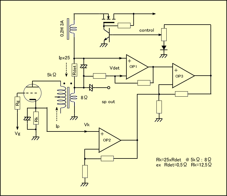 電流の検出は、出力管のカソードと定電流電源に入れた抵抗でできるはずですから、回路さえ正しく考えつけば高いインピーダンスで小型のOPTが使える点、意外とミニワッターの弱点である、しっかりした低音再生に効果的でしょう。