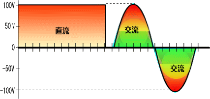 コンセントの電圧は交流といって、いつもプラスとマイナスが、波のように入れ替わっているのです。